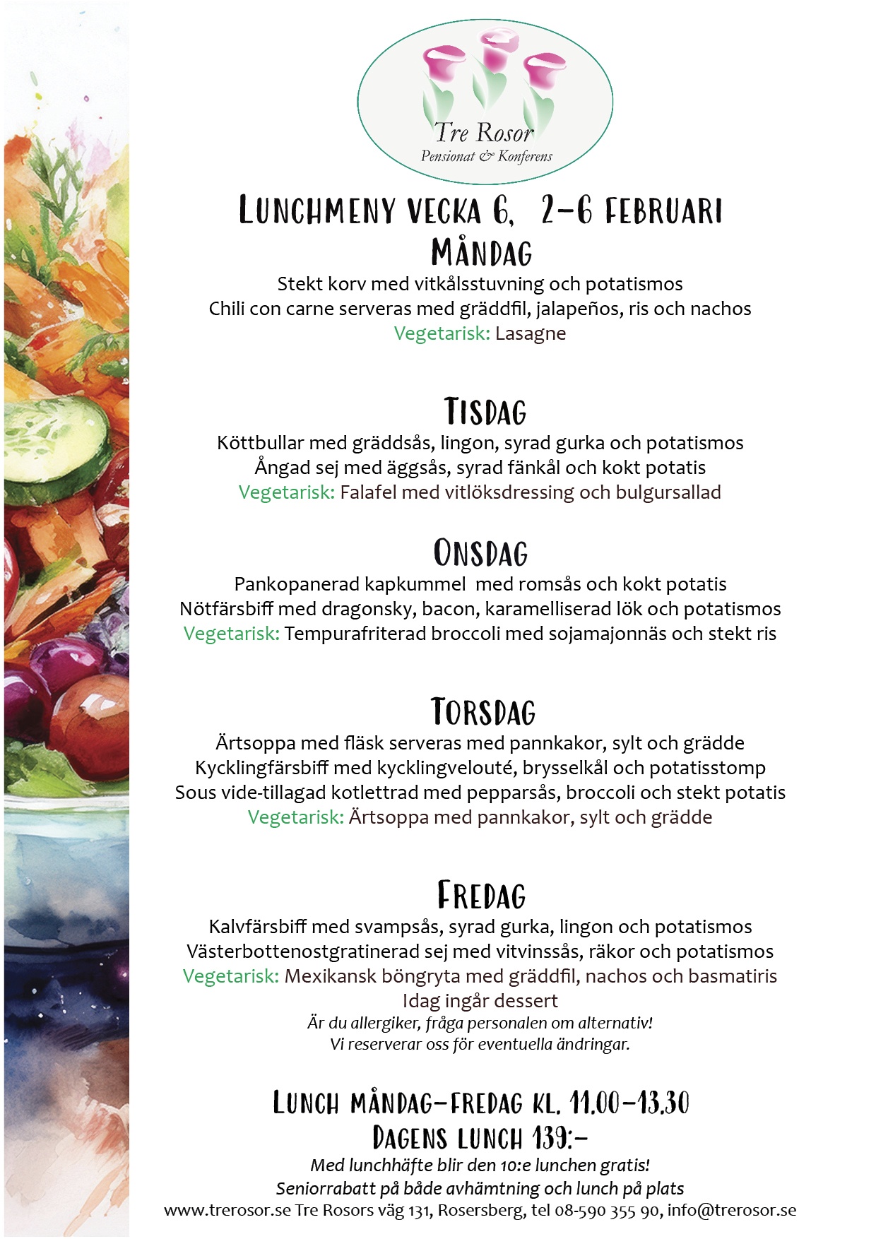 Om ni är ett större sällskap blir vi jätteglada om ni hör av er i förväg, så att vi beräknar rätt mängd mat! Skicka ett mail till info@trerorosor.se eller ring oss på 08-590 355 90. Välkommen!